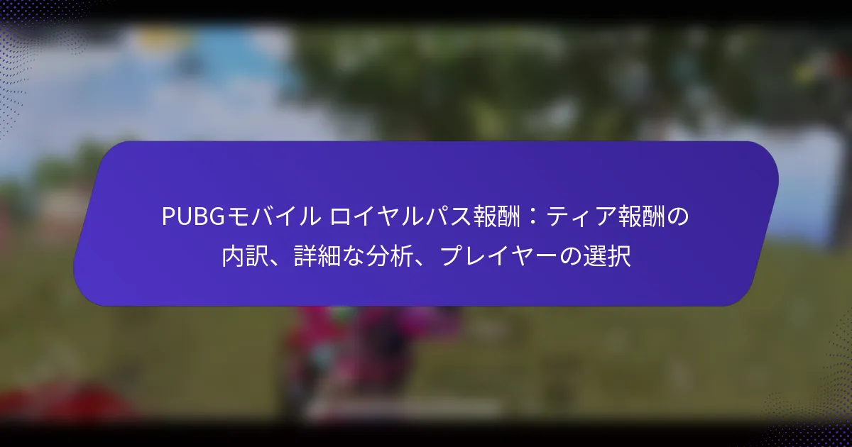 PUBG Mobileのロイヤルパスの主な報酬には、独占的なスキン、アウトフィット、さまざまなゲーム内通貨が含まれます。プレイヤーは異なるティアを進むことで、これらの報酬をアンロックし、ゲームプレイを向上させ、ユニークなカスタマイズオプションを提供します。