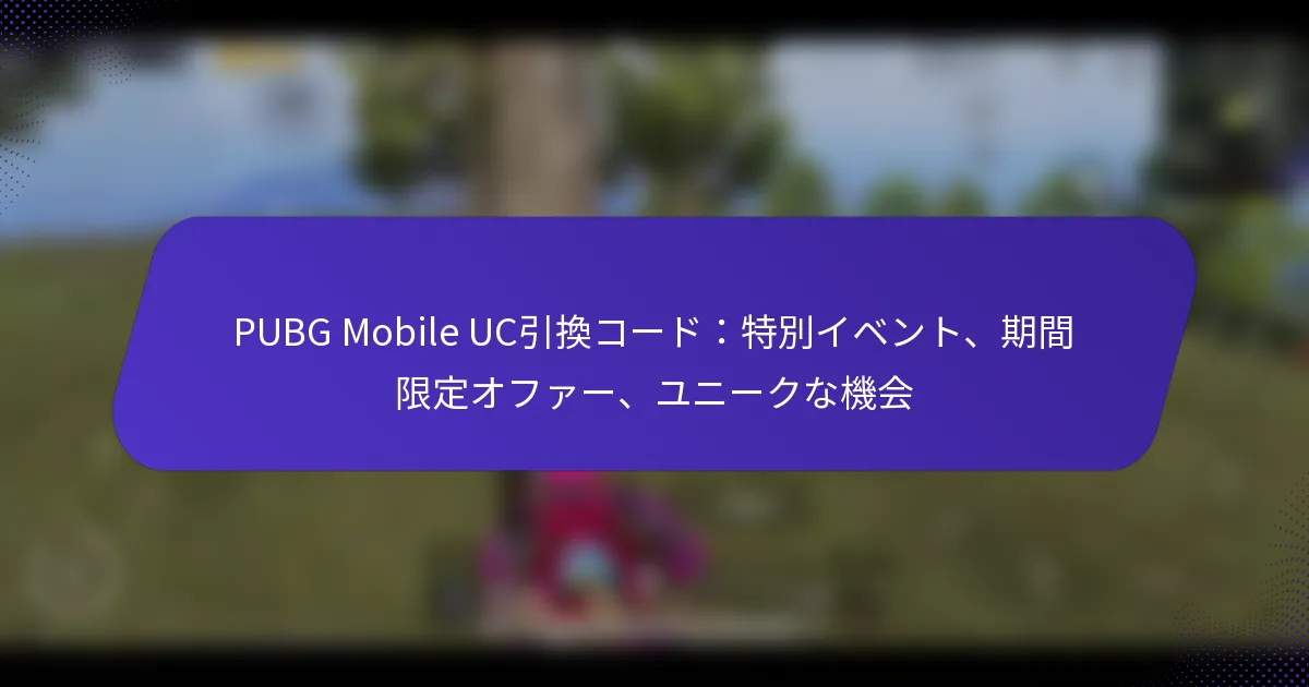 PUBG MobileのUC引換コードは、プレイヤーがUnknown Cash(UC)を取得するために使用できるユニークな英数字の文字列です。これにより、さまざまなゲーム内アイテムにアクセスできるようになり、ゲーム体験が向上します。時間が経つにつれて、これらのコードは単なるマーケティングツールからプレイヤーエンゲージメントの重要な要素へと進化し、ゲームのダイナミクスに大きな影響を与えています。使用統計によれば、プレイヤーはこれらのコードを積極的に引き換えており、プレミアムコンテンツへのアクセスや全体的なゲームプレイの向上における重要性を反映しています。